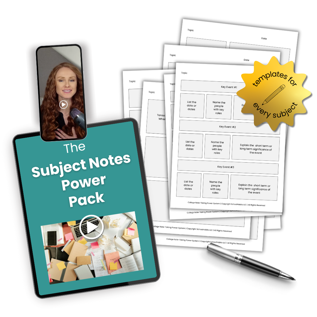 Will this work for any class or subject? Yes. The College Note-Taking Power System is designed to be flexible and works for any class, lecture, workshop, or even professional meeting. Whether you’re taking science notes, history notes, or planning a work project, the core principles are the same.